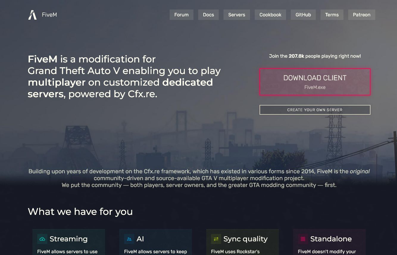 FiveM is een mod die je in staat stelt om op aangepaste servers te spelen in GTA V. Ga naar FiveM.net en klik op "Download Client". Je moet eerst akkoord gaan met hun "Terms of Service" en onderaan de pagina op "Sure, i agree" klikken. Vervolgens moet je het gedownloaden bestand uitvoeren. Fivem download automatisch alle benodigde bestanden. Als het goed is kan FiveM ook automatisch herkennen waar je in stap 2 GTA V hebt geinstalleerd.